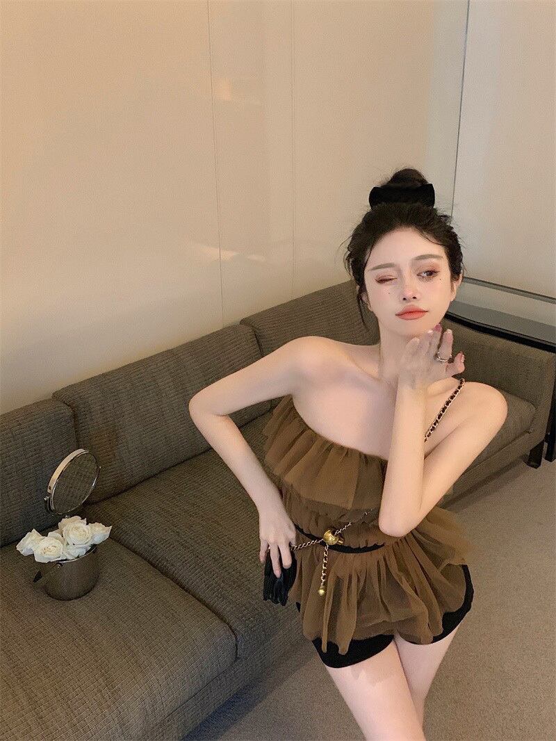 -quality temperament pleated mesh tube top women's summer 2022 new style small people who want to show off the shoulders and slim tops プリーツ サマー 夏物 メッシュ スリム 0921958773215693