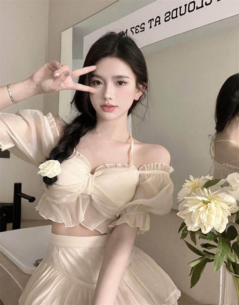 Beautiful suit skirt female summer 2022 new fairy halter top cake skirt sweet and spicy style two-piece tide 大人ガーリー スウィート キュート カジュアル サマー 夏物 スカート 0921990413525190