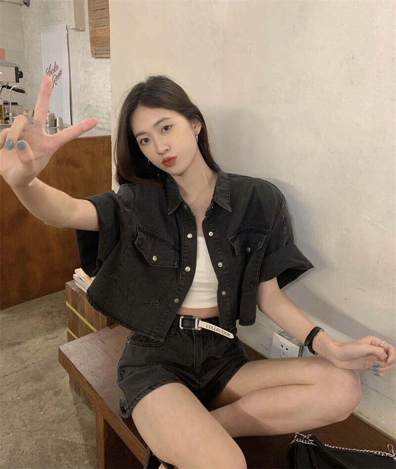 Small fashion denim suit female summer 2022 new version short coat wide leg shorts two-piece tide ショート サマー 夏物 ショーツ ブルマー ワイドレッグ ワイドパンツ 0921929168413590