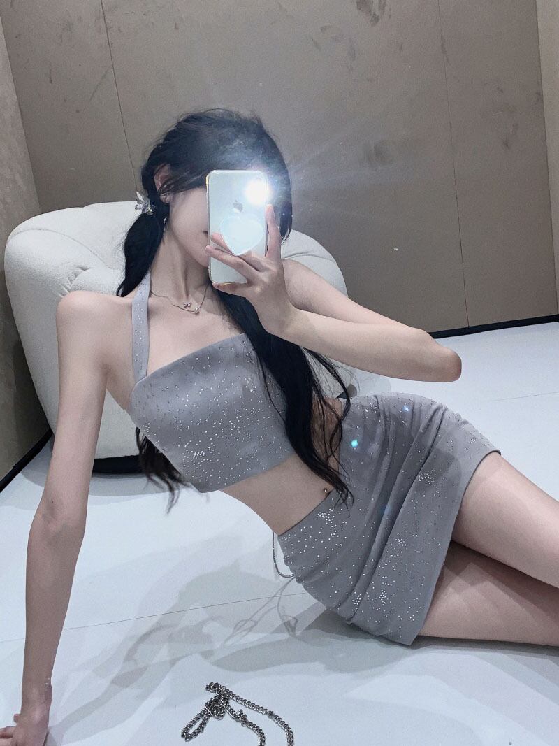 Royal sister fried street suit female summer 2022 new sparkling halter vest bag hip skirt high-end two-piece set ストリート サマー 夏物 スカート 0921959064321031