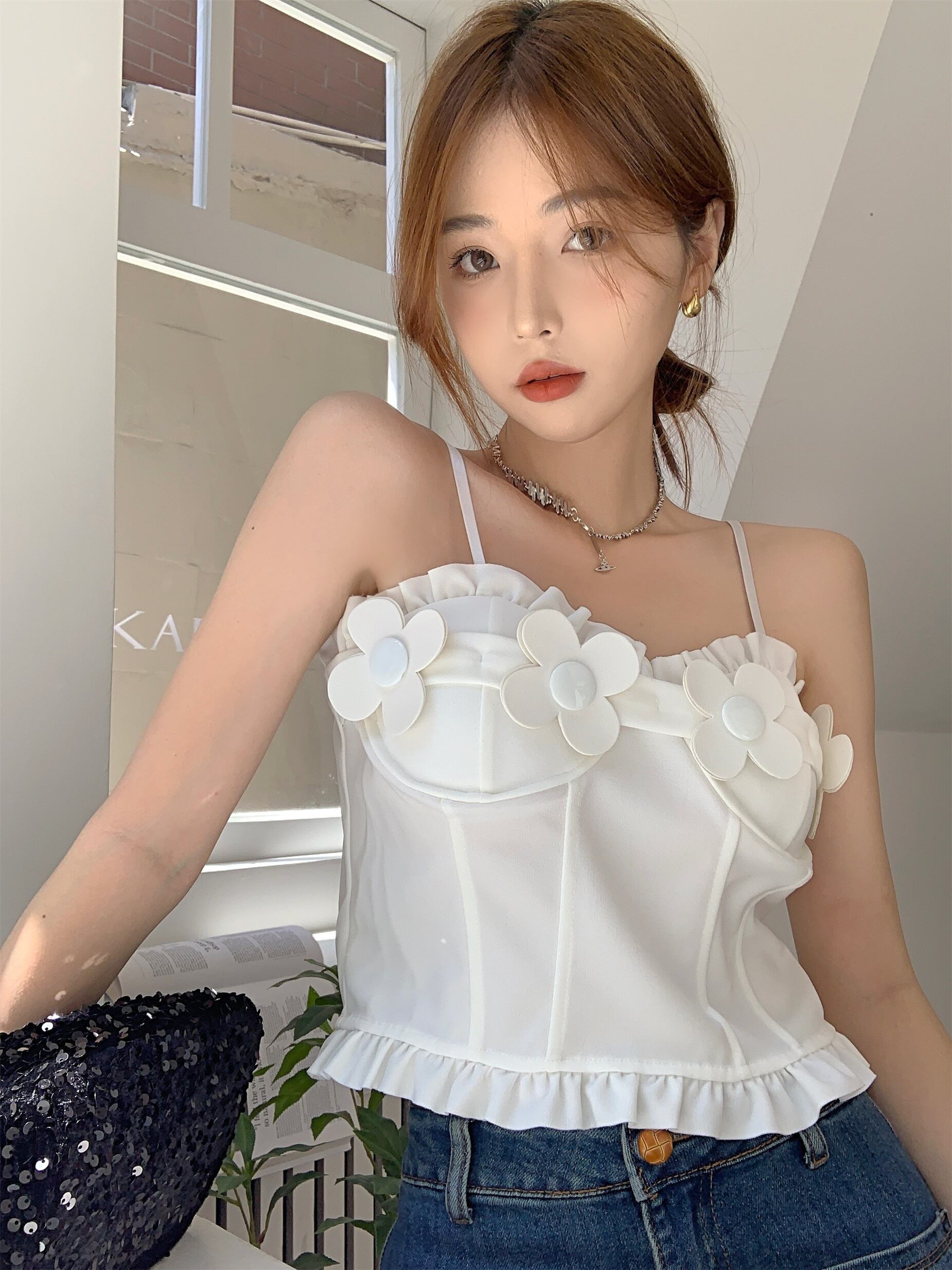 Pure desire three-dimensional flower white camisole women's outer wear trendy summer 2022 new chic slim short top ショート ホワイト サマー 夏物 スリム フラワーデザイン 0921990054505475