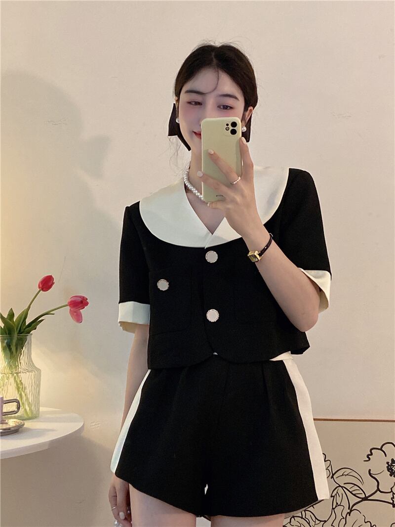 French Hepburn style fashion suit women's summer 2022 new temperament hit color short jacket shorts two-piece tide ショート サマー 夏物 ショーツ ブルマー 0921981035188430