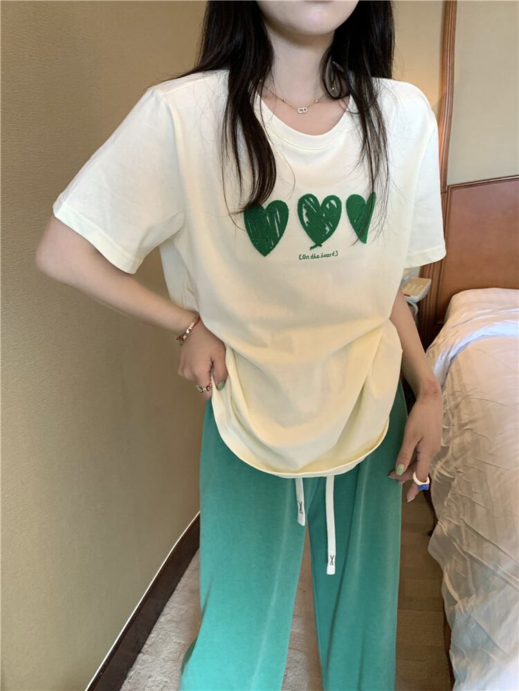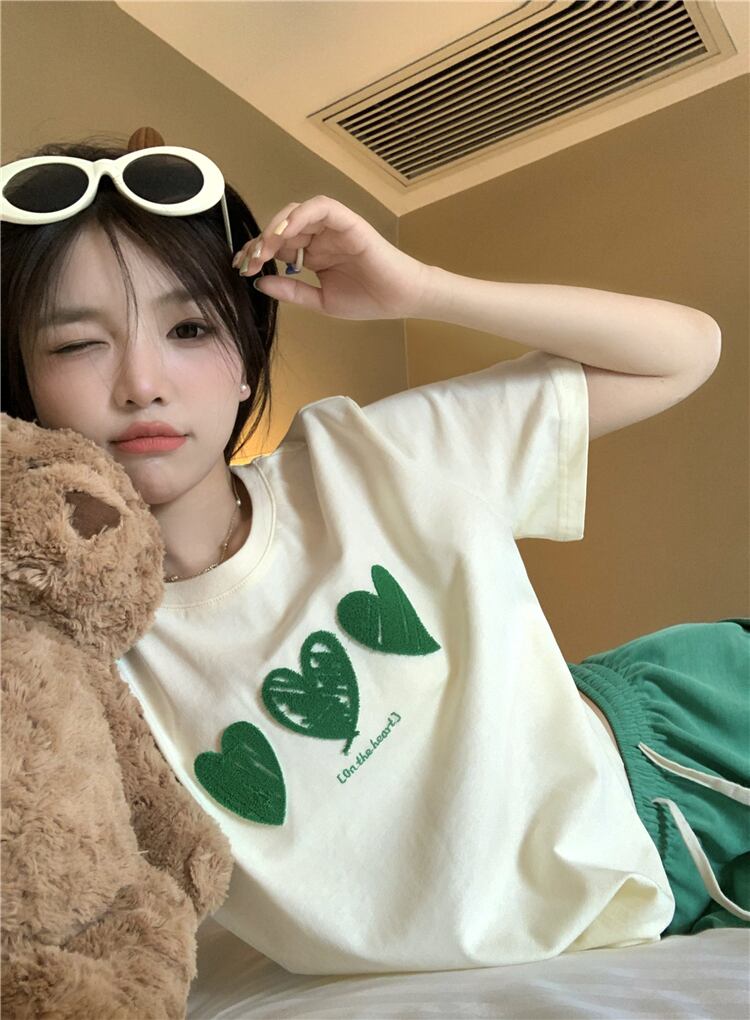 Three-dimensional embroidery love short-sleeved t-shirt women's ins tide summer 2022 new design sense version all-match loose top 刺繍 サマー 夏物 Tシャツ 0921938140050706