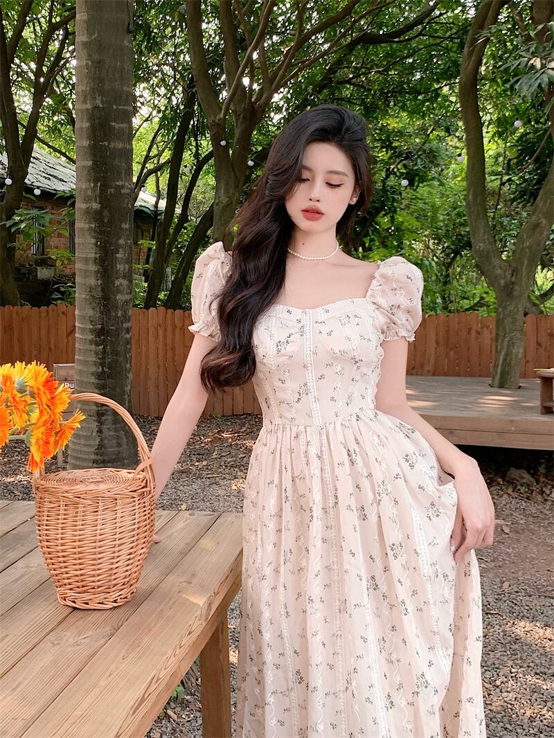 French Tea Break Floral Dress Women's Summer 2022 Gentle Wind Waist Thin Mid-Length A-Line Skirt サマー 夏物 花柄 スカート Aライン 0921919340749611