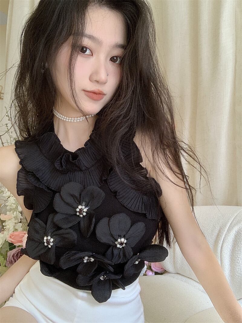 sense niche heavy industry three-dimensional flower sleeveless knitted vest women's summer 2022 new temperament slim top サマー 夏物 ノースリーブ スリム フラワーデザイン 0921935576559369