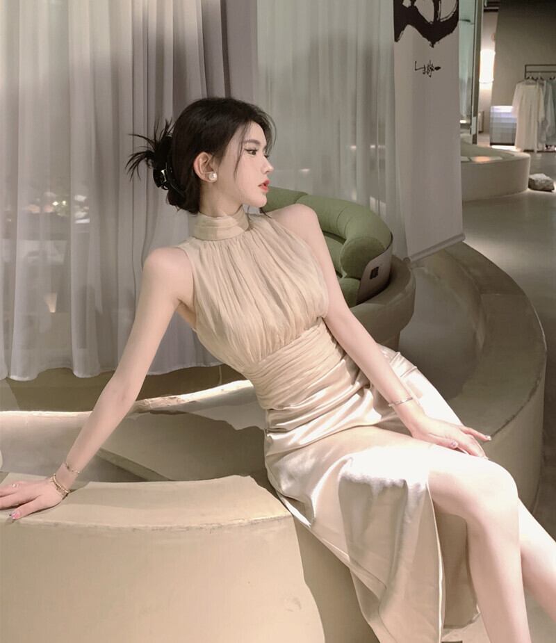 Mesh half turtleneck sleeveless vest women's outer wear trendy summer 2022 new design pleated slim short top ショート プリーツ サマー 夏物 メッシュ ノースリーブ スリム 0921956910383020
