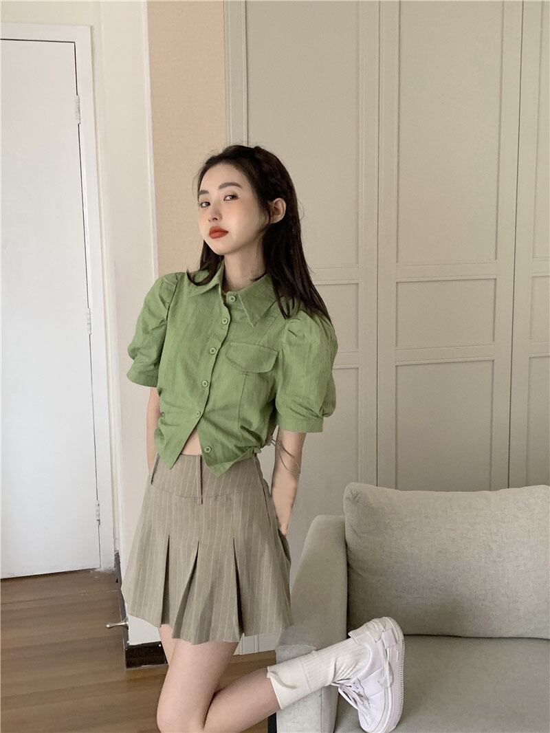 sense chic drawstring white shirt women's summer 2022 new chic temperament slim short top ショート ホワイト サマー 夏物 スリム 0921917870311661