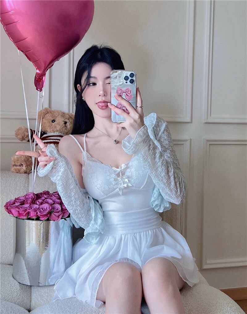 Pure desire wind sunscreen cardigan long-sleeved lace top women's summer 2022 new all-match temperament slim short shirt ショート ロング レース カーディガン サマー 夏物 スリム 0921961101151683