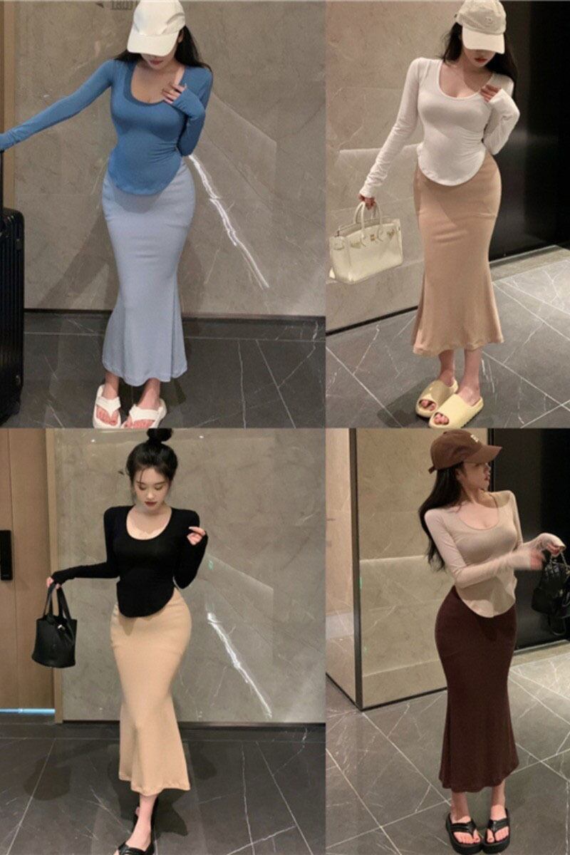 Sexy bottoming suspender dress women's summer 2022 new slim waist and thin mid-length fishtail skirt with buttocks サマー 夏物 スカート スリム 0921929984645171