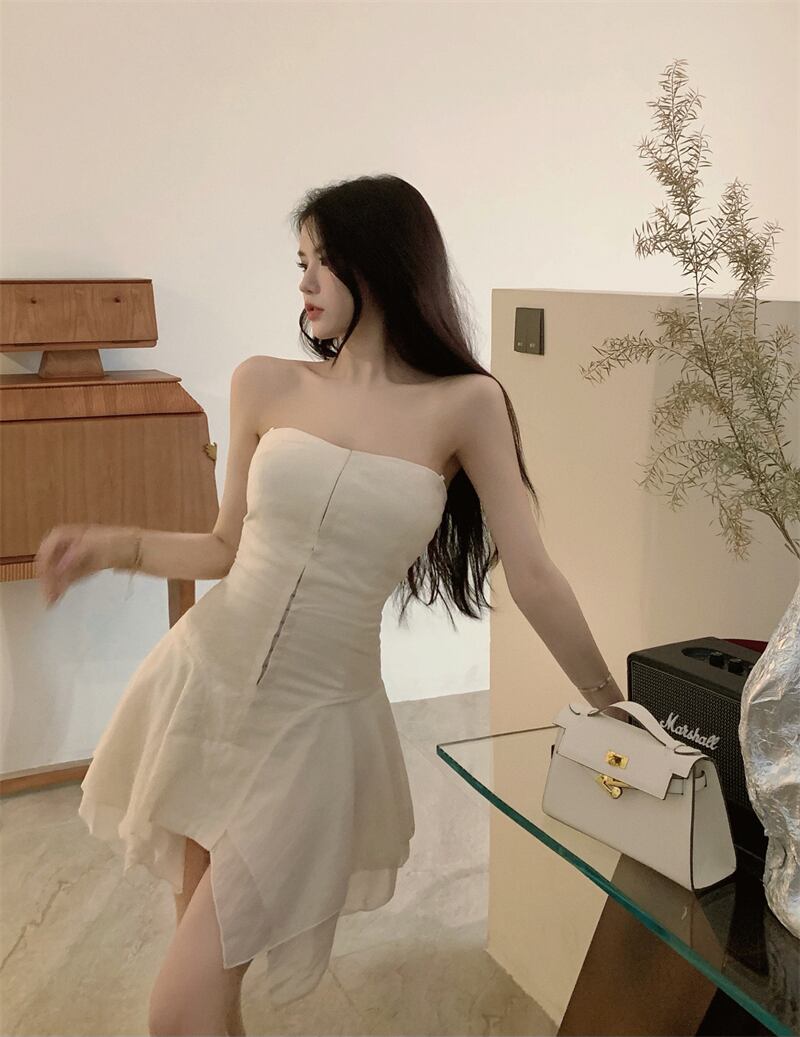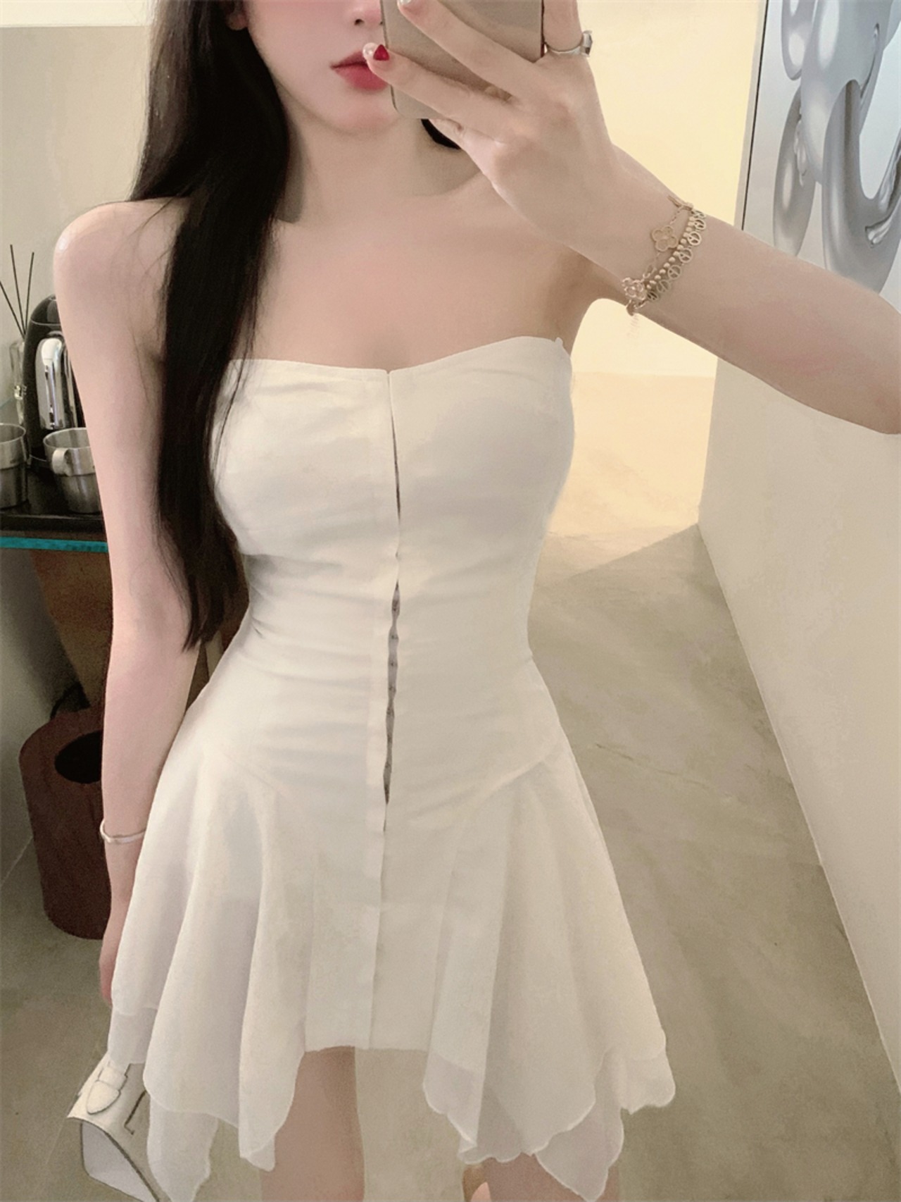 Pure desire style tube top dress female summer 2022 new temperament backless waist design irregular skirt trend サマー 夏物 スカート 0921914565926931