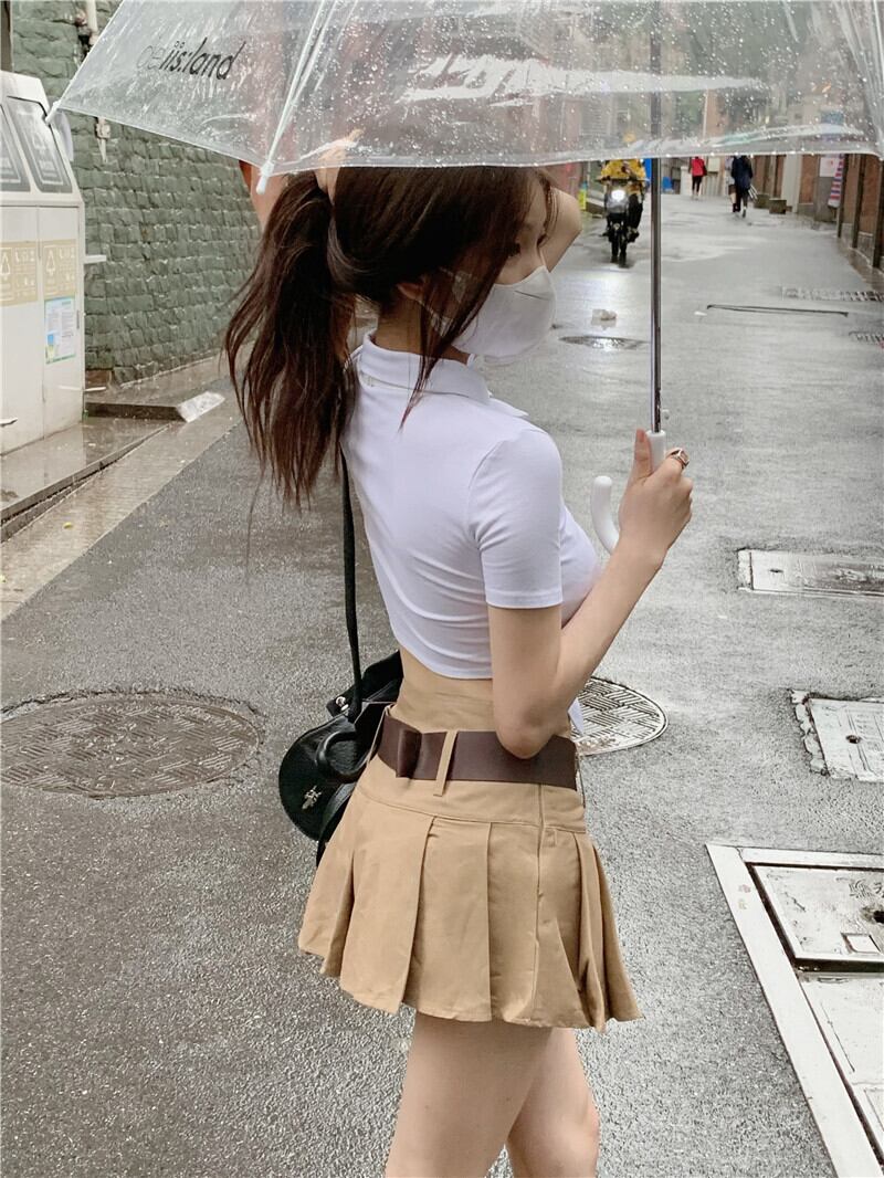 American white short-sleeved T-shirt women's summer 2022 new design pleated slim short top ins tide ショート ホワイト プリーツ サマー 夏物 スリム Tシャツ 0921961932092520