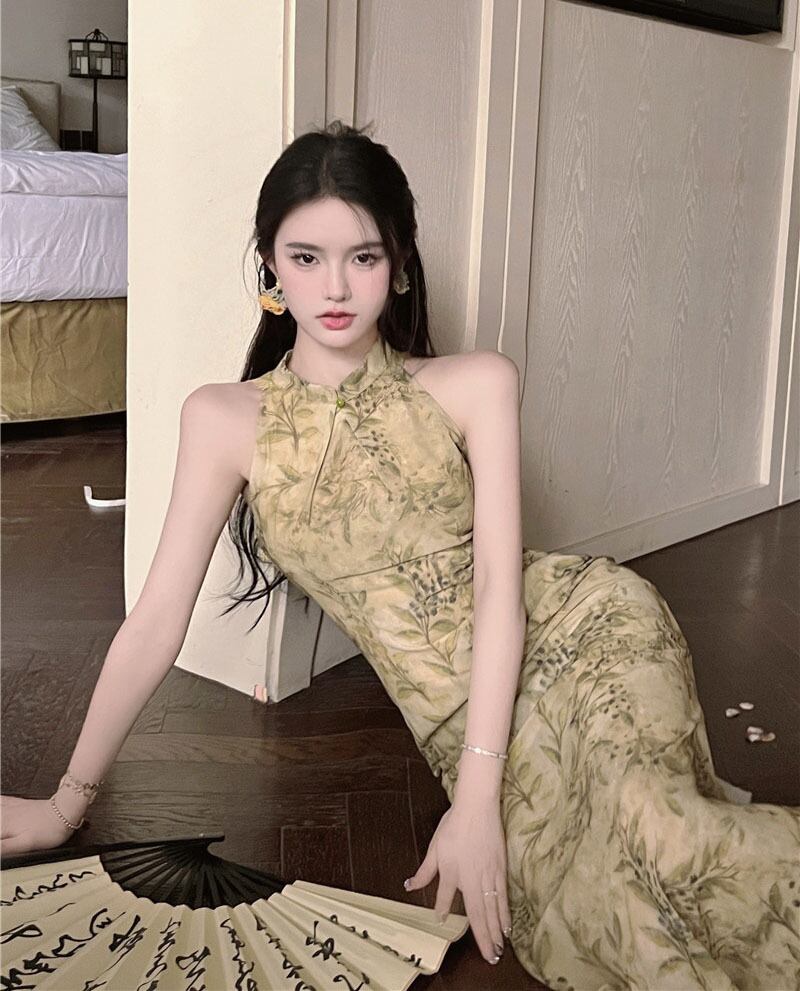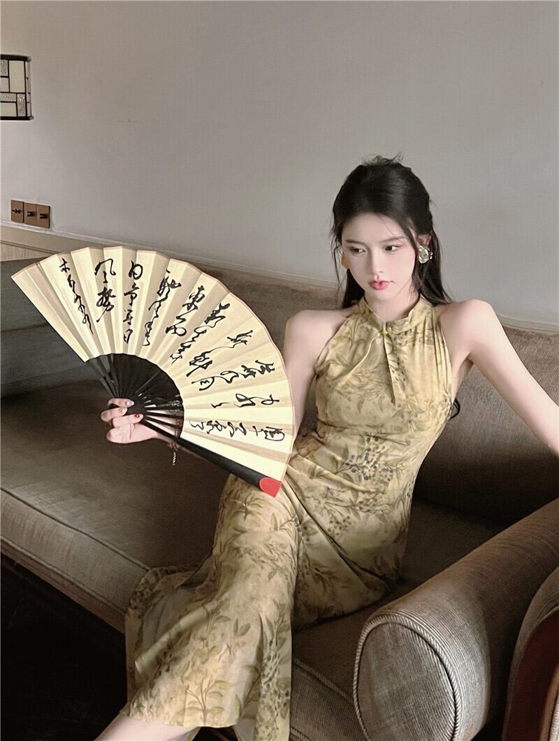 -quality improved cheongsam dress women's summer 2022 new temperament floral skirt waist mid-length package hip skirt サマー 夏物 花柄 スカート 0921910216468298