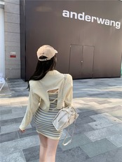 sense niche long-sleeved sunscreen shirt women's summer 2022 new style chic open back all-match short top ショート ロング サマー 夏物 0921966541587361