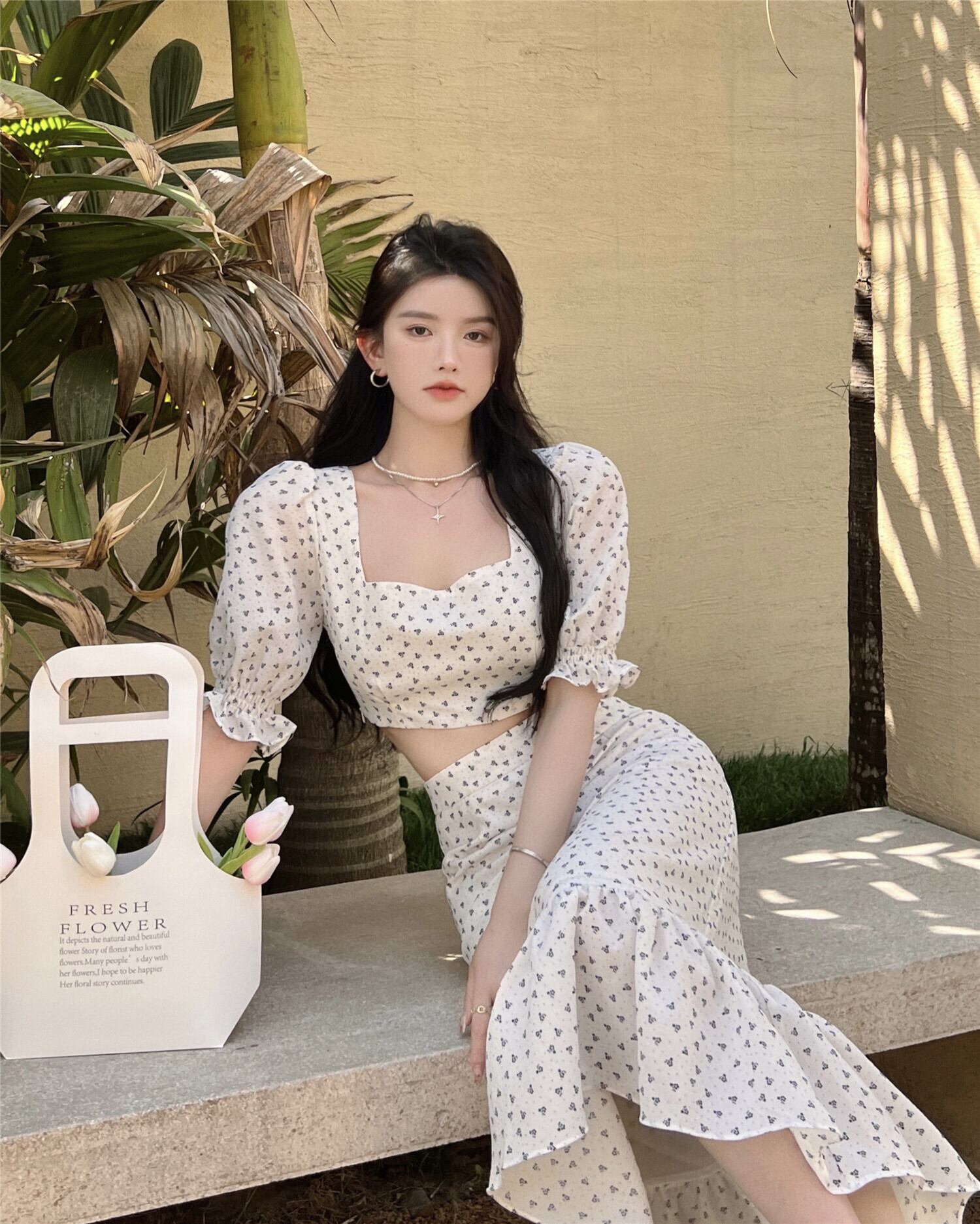 -quality light familiar style suit female summer 2022 new eign style short shirt fishtail skirt two-piece tide ショート サマー 夏物 スカート 0921944877802580