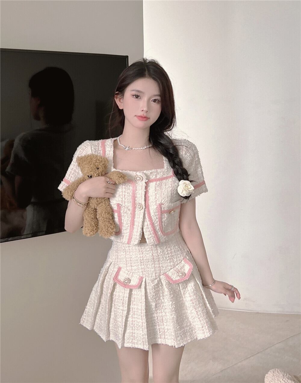 Small fragrance suit female summer 2022 new small short top pleated skirt temperament ladies two-piece tide ショート プリーツ サマー 夏物 スカート 0921914539409556