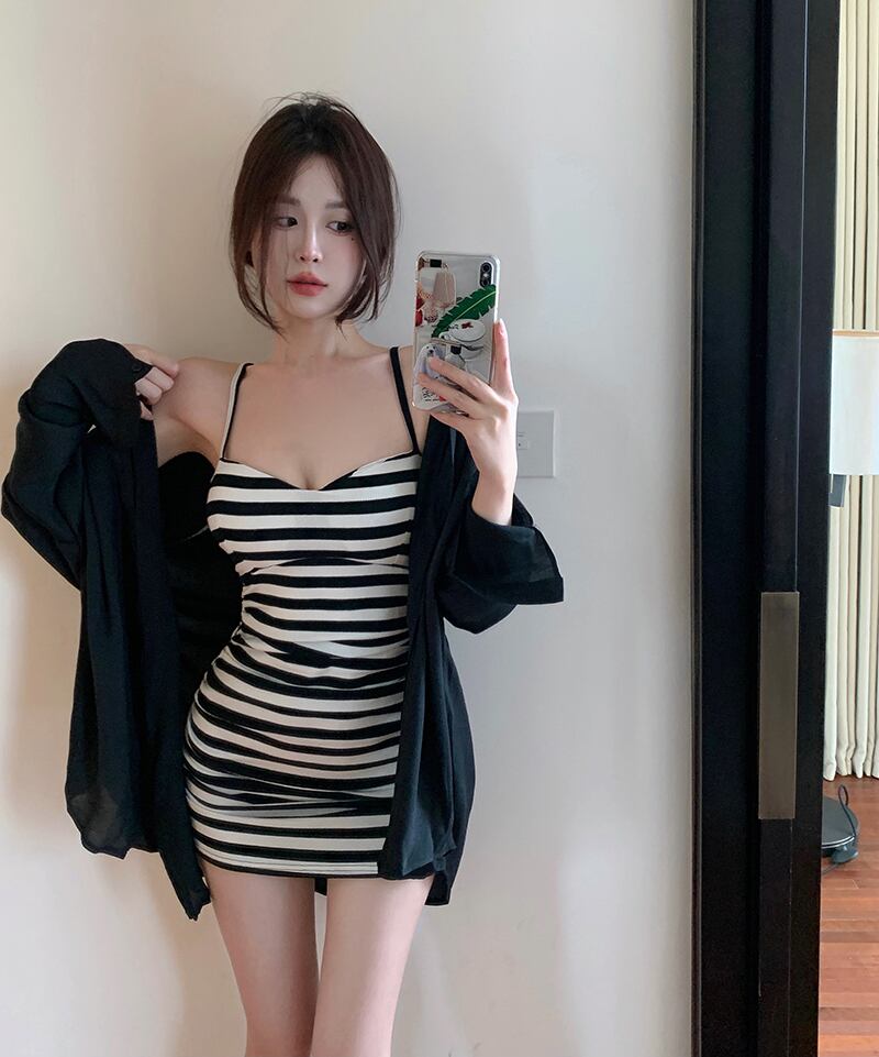 色:ブラックshirtsinglepiece,Singlepieceofホワイトshirt,ストライプdcamisole
