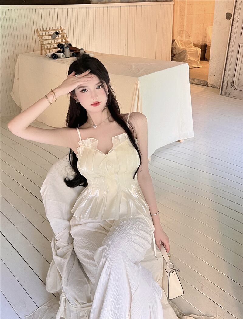 sense pressure pleated pure desire wind camisole women's outer wear summer 2022 new fungus edge waist short top ショート プリーツ サマー 夏物 ピュア 092198551981554