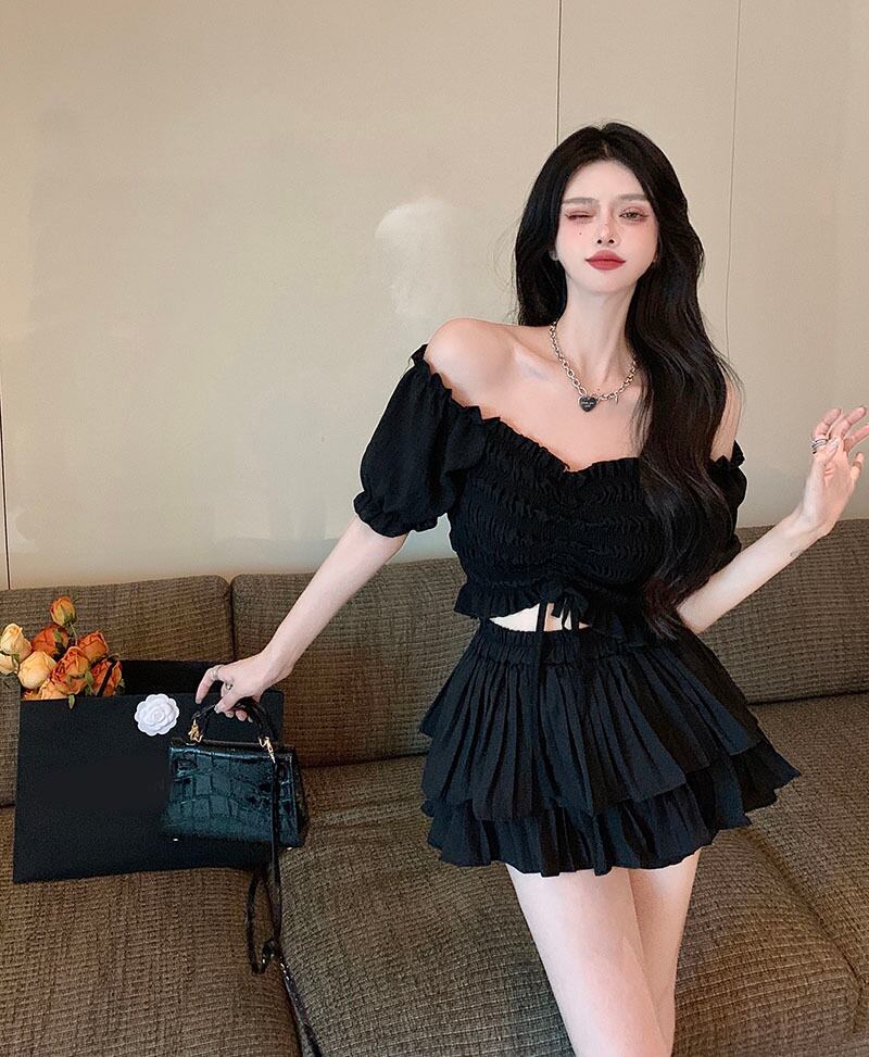 Hot black suit skirt female summer 2022 new temperament pleated short top cake short skirt two-piece tide ショート ブラック プリーツ サマー 夏物 スカート 0921948213611969