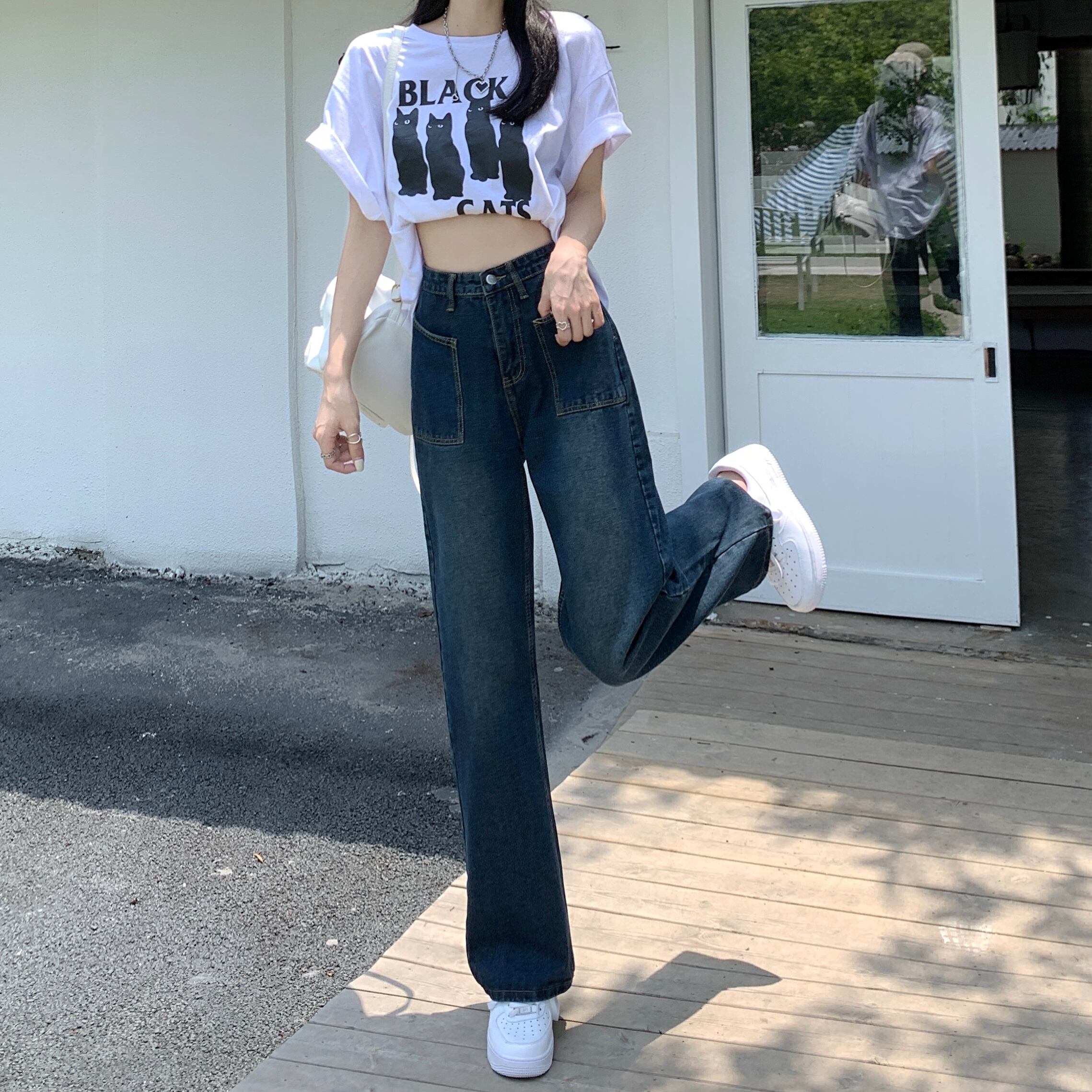 Retro dark blue Hong Kong flavor straight jeans women's summer 2022 new design high waist thin wide leg pants ハイウェスト ブルー レトロ サマー 夏物 ワイドレッグ ワイドパンツ 0921995681356318