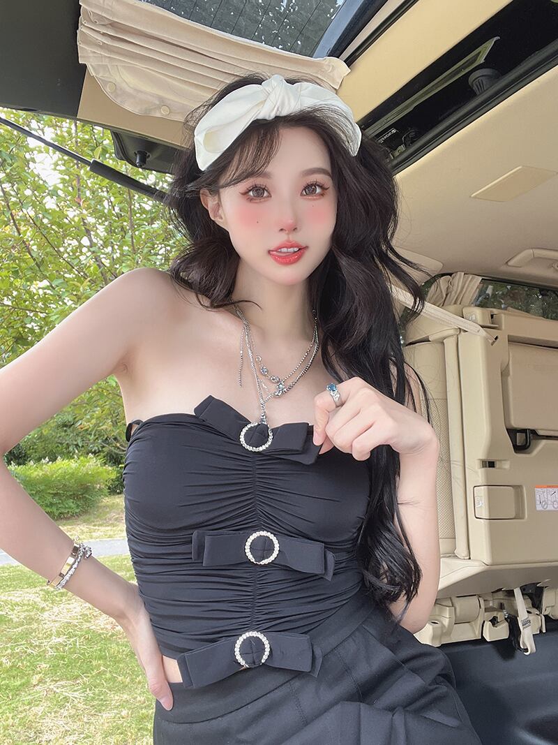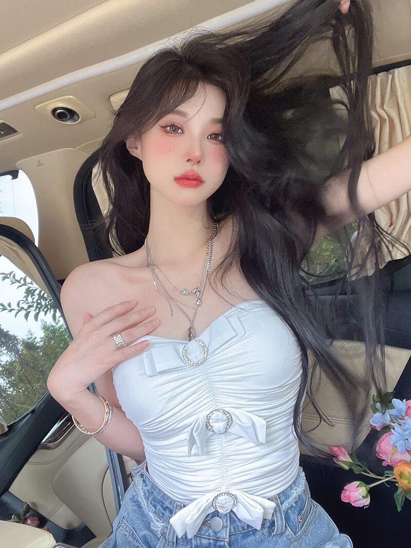 Pure desire wind pleated bow white tube top vest women's outer wear summer 2022 new temperament short tops trend ショート ホワイト リボン プリーツ サマー 夏物 0921918855583308