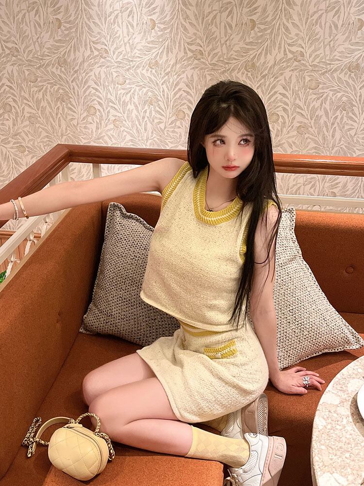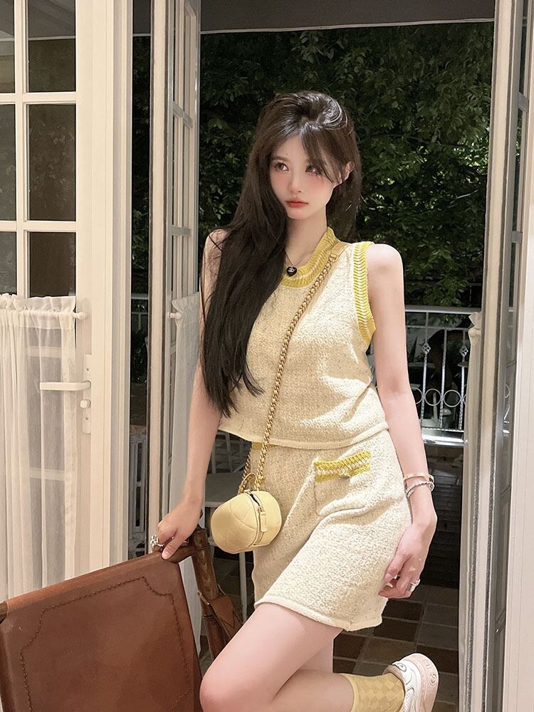 Small fragrance suit skirt female summer 2022 new sweet and spicy sleeveless vest skirt small knitted two-piece 大人ガーリー スウィート キュート カジュアル サマー 夏物 ノースリーブ スカート 092197343151935