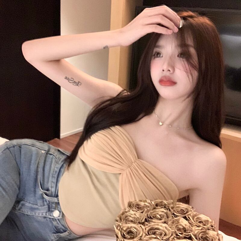 Sexy pleated tube top top women's summer outer wear 2022 new style inner self-cultivation short wrap chest vest trendy ショート プリーツ サマー 夏物 0921951223314094