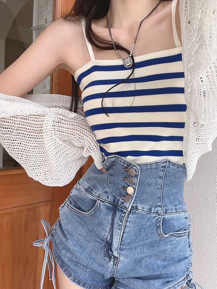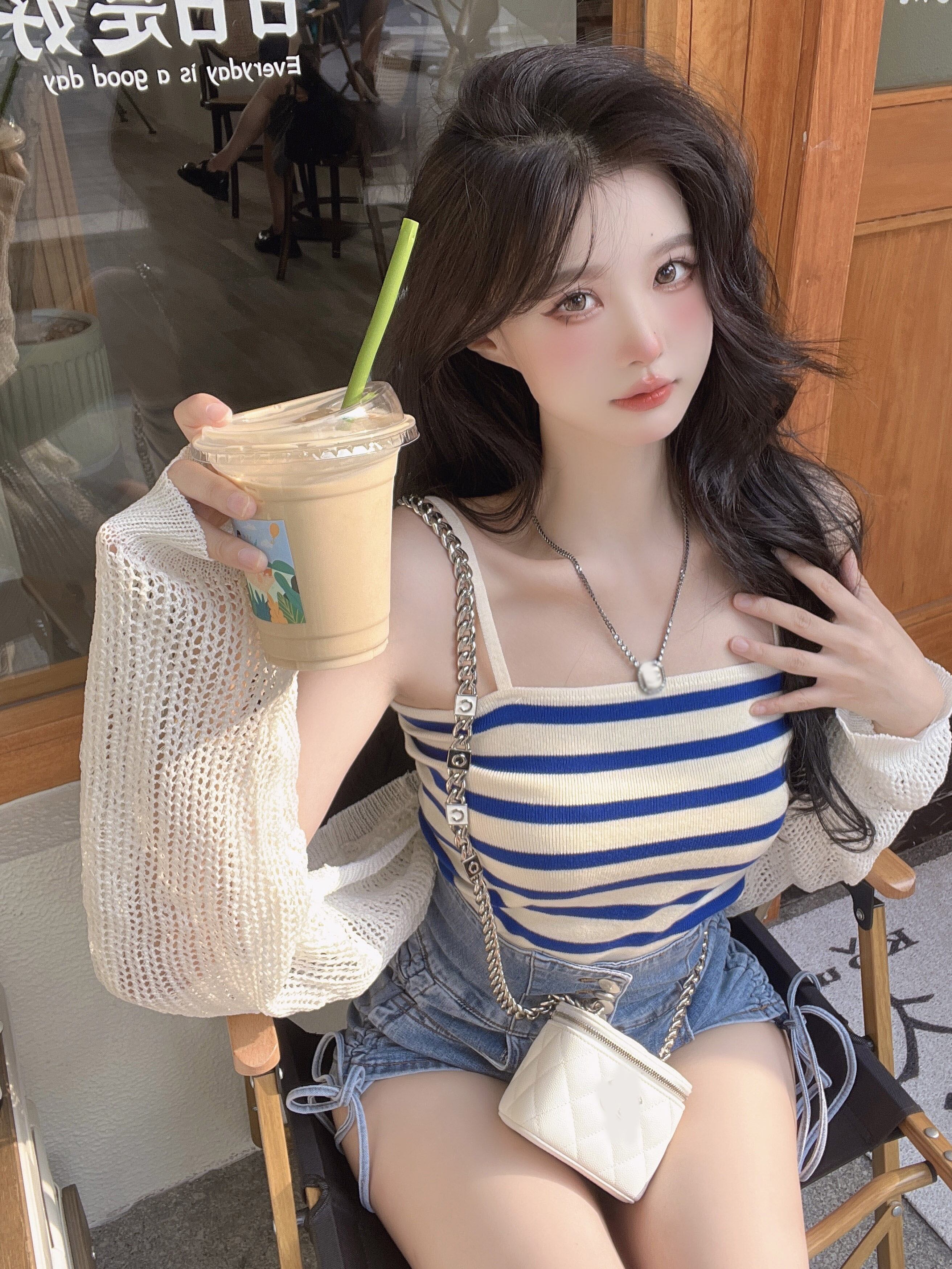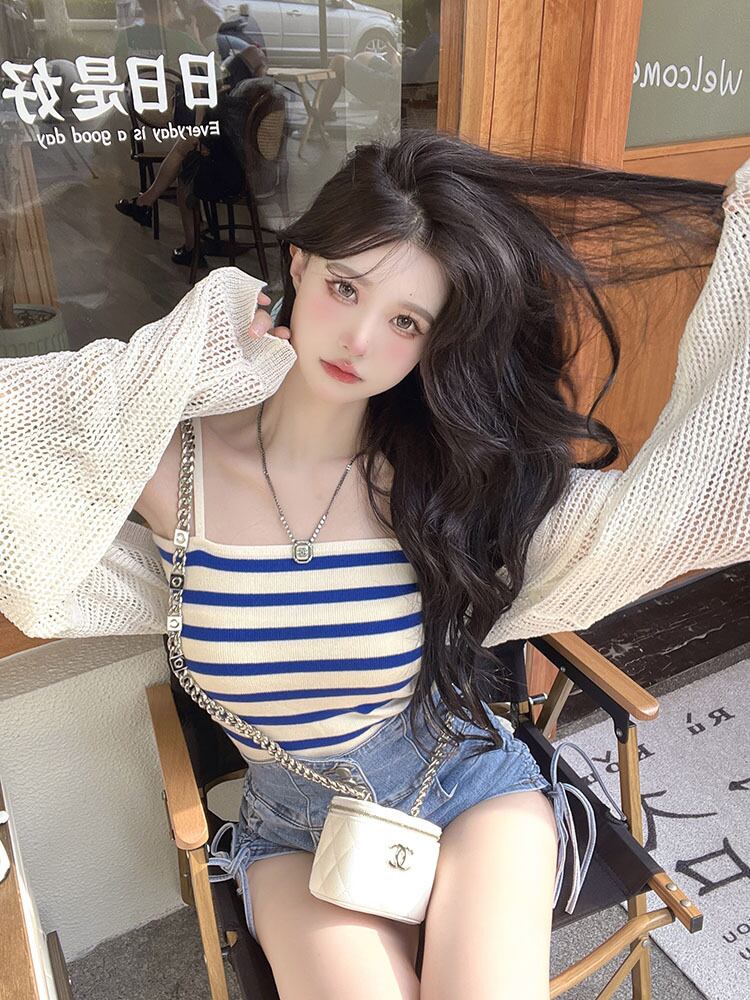Pure desire wind sweet striped camisole women's summer 2022 new small temperament short top trend ショート 大人ガーリー スウィート キュート カジュアル サマー 夏物 ストライプ 0921914745394635