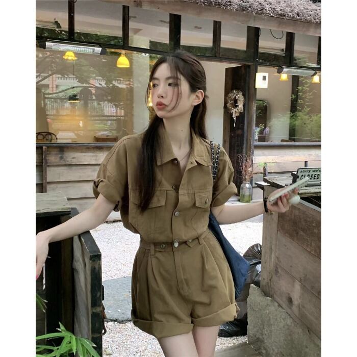 sense chic retro tooling jumpsuit women's summer 2022 new small loose and thin wide-leg shorts レトロ サマー 夏物 ショーツ ブルマー 0921969063857176