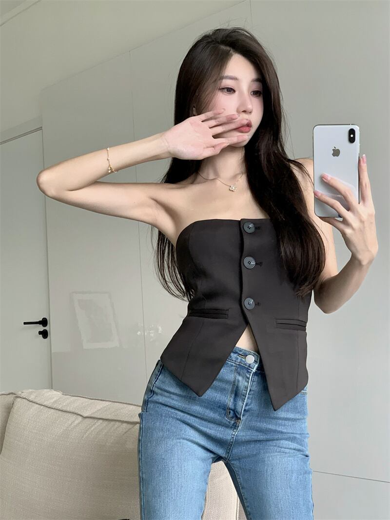 Spice Girls White Irregular Tube Top Top Women Summer 2022 Style Inside Slim Slim Short Vest Outside Wear ショート ホワイト サマー 夏物 スリム 0921946056654711
