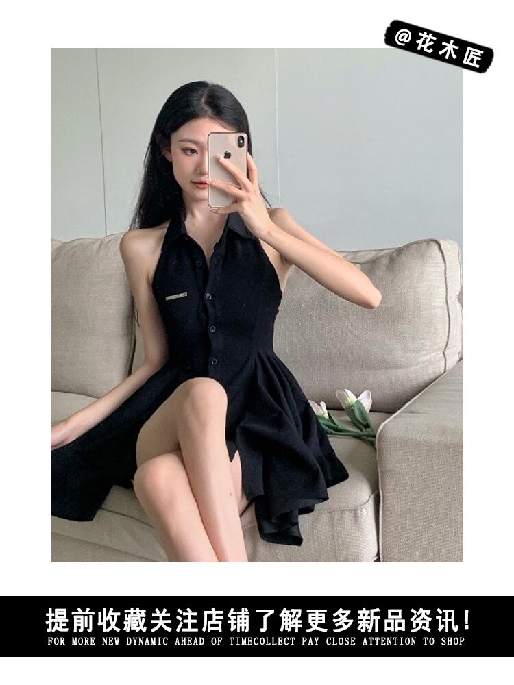 sense niche black halter dress female summer 2022 new sexy backless waist A-line skirt ブラック サマー 夏物 スカート Aライン 0921911502317964