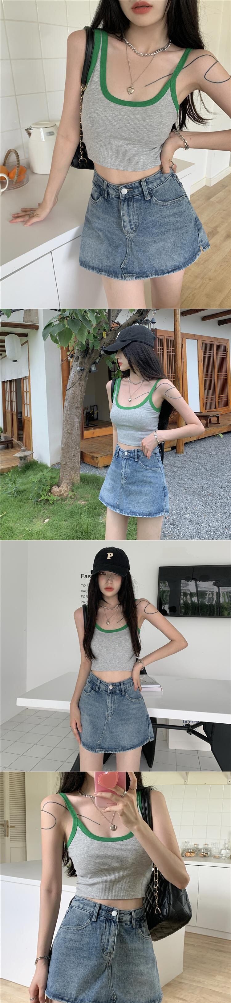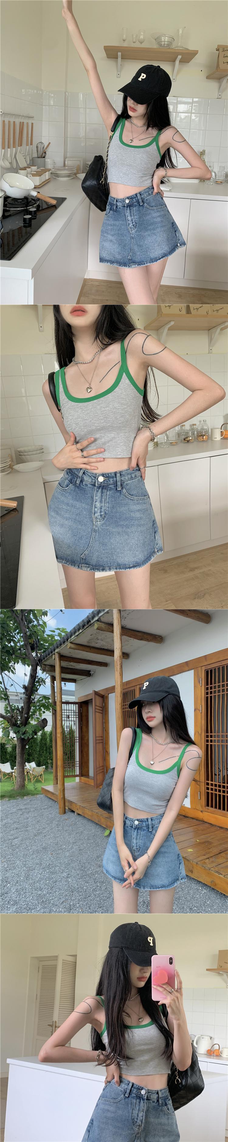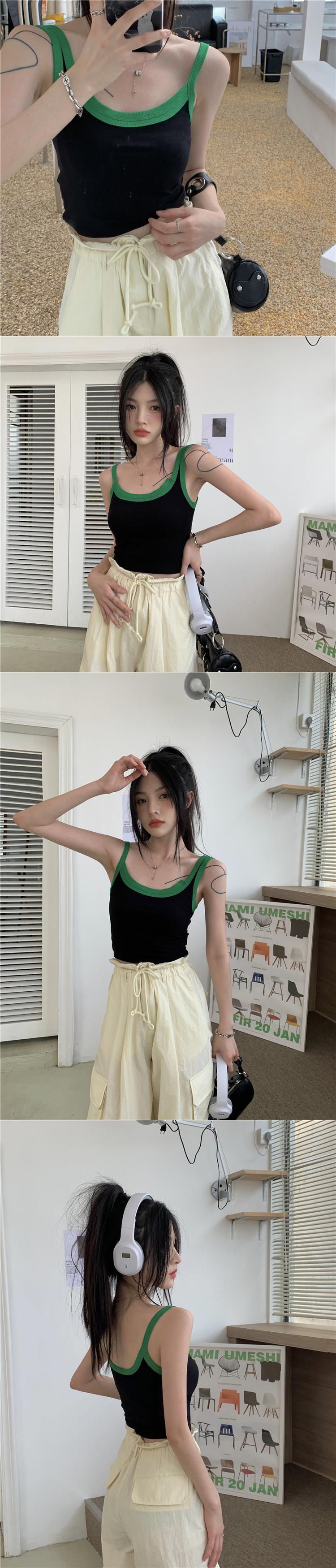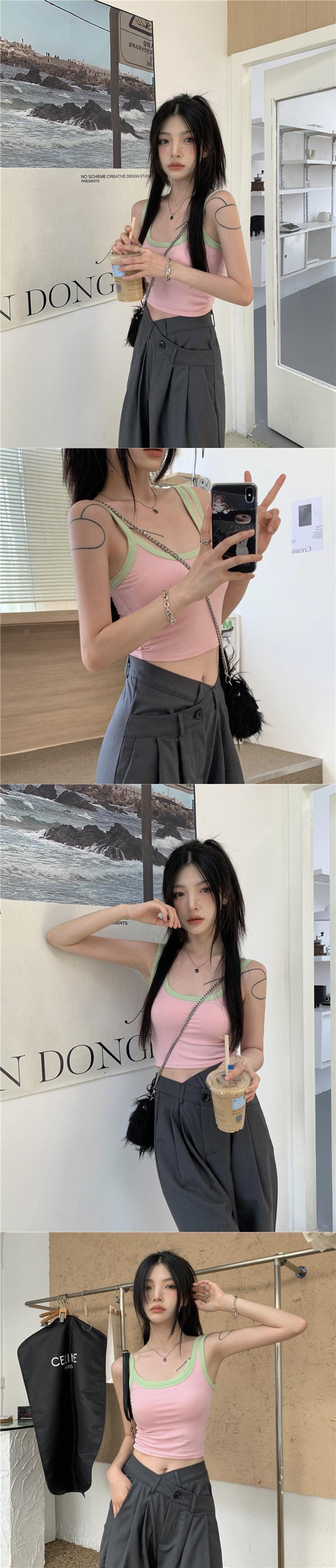 sense chic hit color camisole female summer outer wear 2022 new temperament all-match slim top サマー 夏物 スリム 0921988394091141