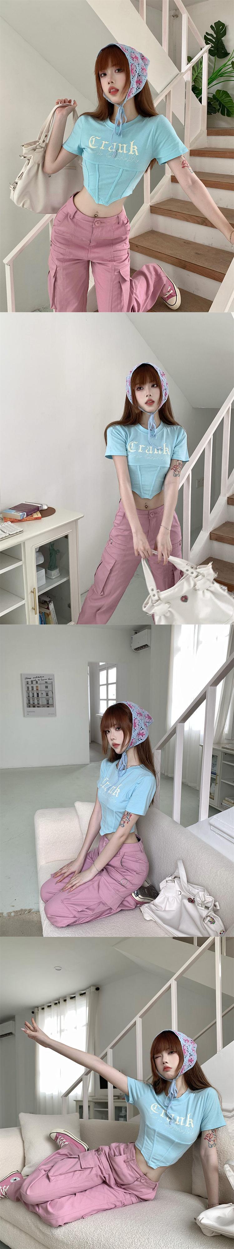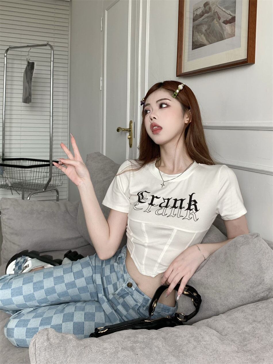 sense niche letter printing blue short-sleeved T-shirt women's summer 2022 new tight short top ショート ブルー サマー 夏物 Tシャツ 0921948498871681