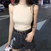 Sweet and spicy pure desire off-the-shoulder sleeveless vest women's summer outer wear 2022 new design temperament slim short top ショート 大人ガーリー スウィート キュート カジュアル サマー 夏物 ノースリーブ スリム ピュア 0921956783149038