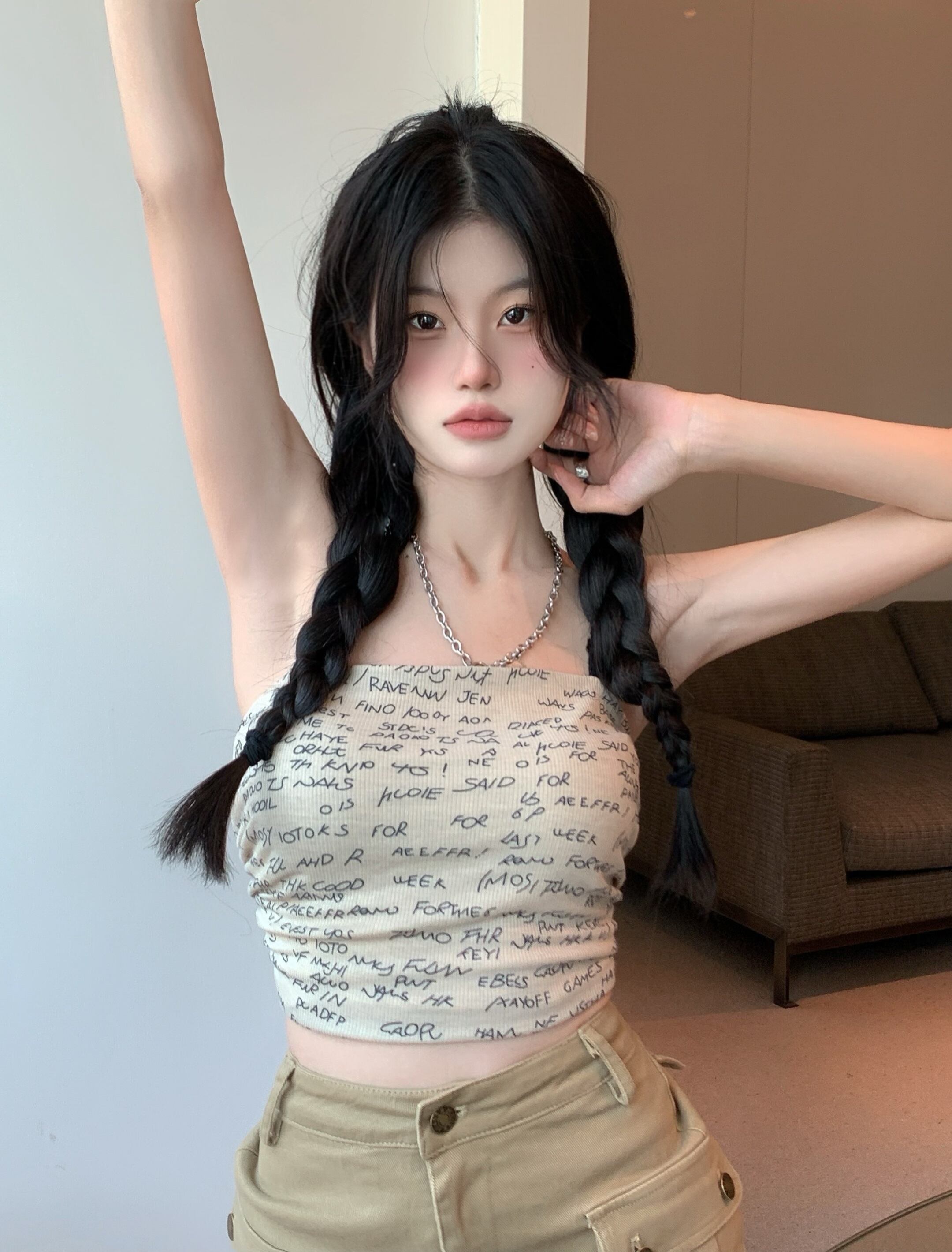 Sweet and spicy letter print camisole women's summer new design sense outer wear short tube top top ショート 大人ガーリー スウィート キュート カジュアル サマー 夏物 0921994538788413