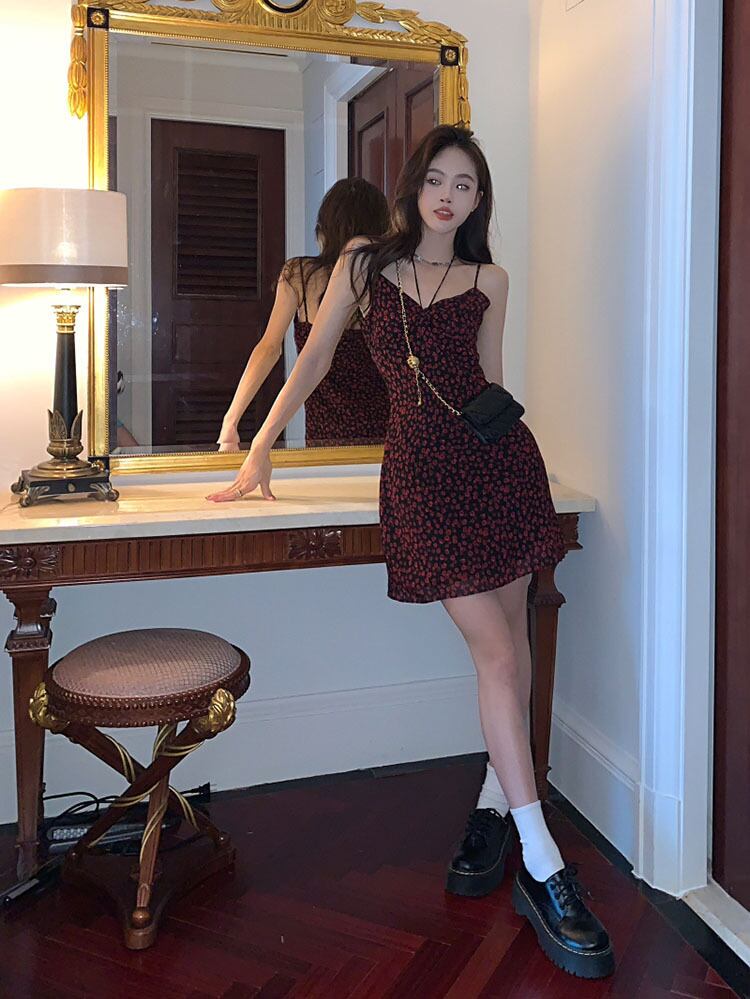 Hot sexy V-neck suspender floral dress female summer 2022 new chic temperament backless waist A-line skirt サマー 夏物 花柄 スカート Vネック Aライン 0921920689218665