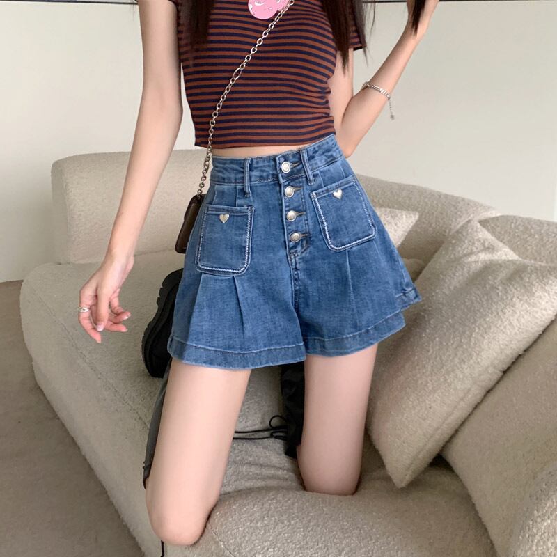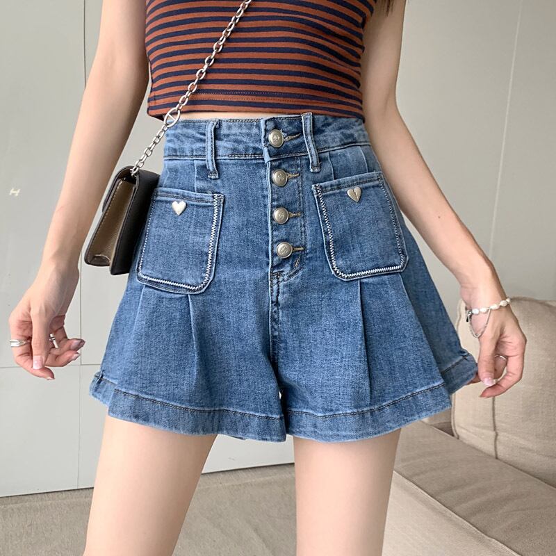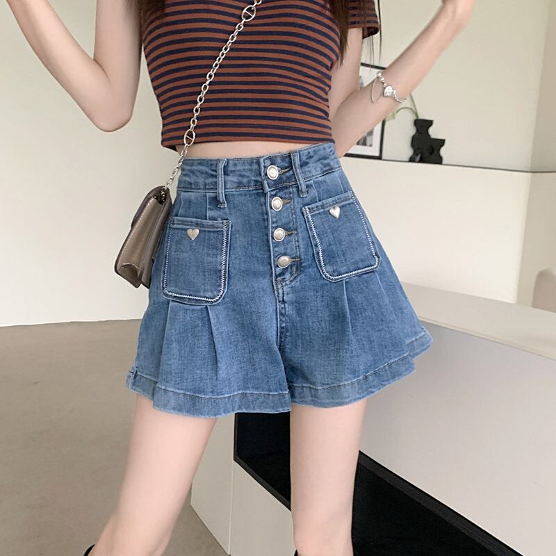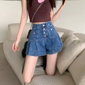 Pure Desire Chic Waist Jeans Women's Summer 2022 Small Loose Thin Wide Leg Shorts サマー 夏物 ショーツ ブルマー ワイドレッグ ワイドパンツ 092192913728986