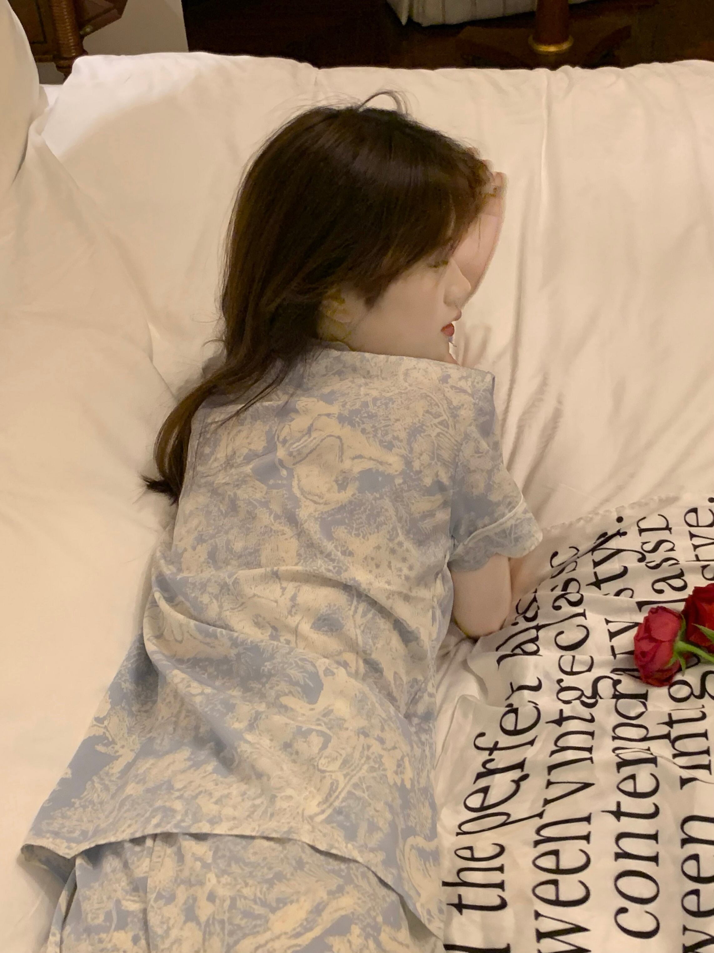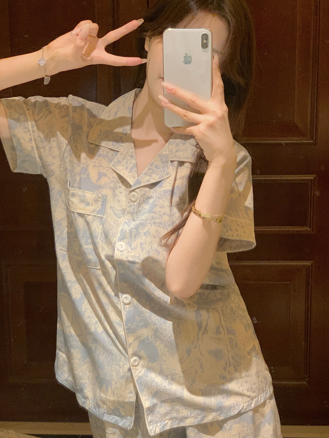 ins wind print ice silk short-sleeved pajamas pajamas women's summer 2022 new version of the trend of casual homewear suits カジュアル サマー 夏物 シルク 0921964860151659