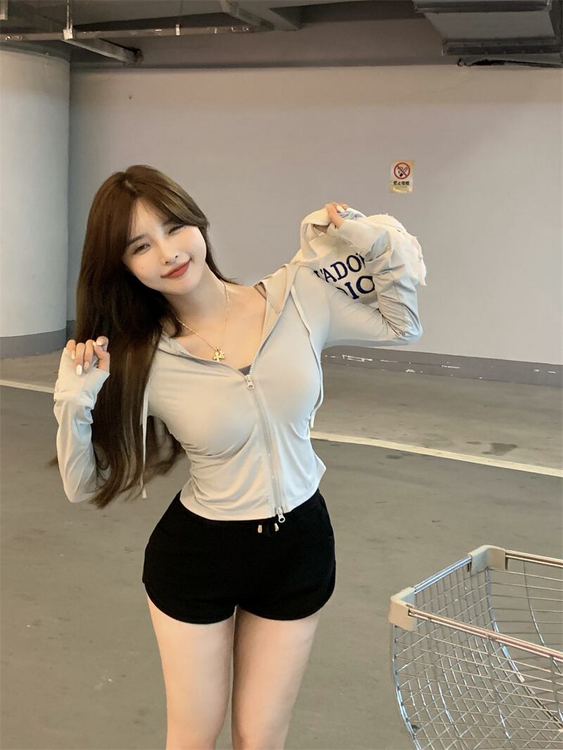 Thin hooded sunscreen long-sleeved t-shirt women's summer 2022 new version all-match zipper slim short top trendy ショート ロング サマー 夏物 スリム Tシャツ 0921955336266780