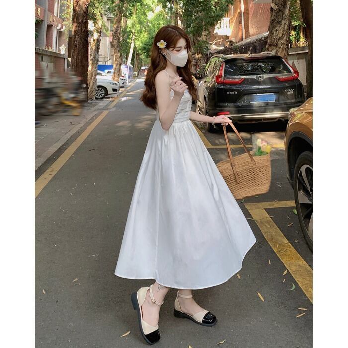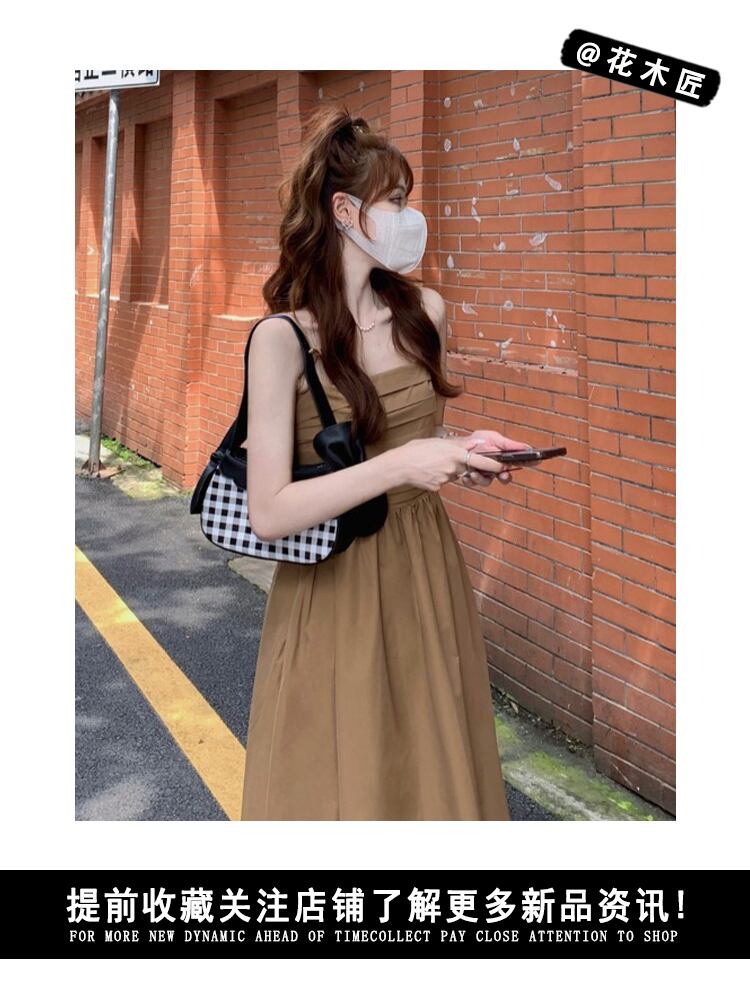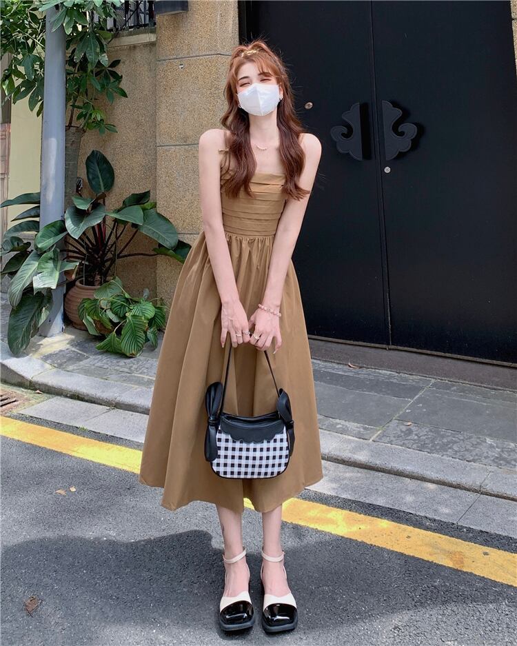 Retro pleated coffee color suspender dress female summer 2022 new French chic waist mid-length skirt trendy レトロ プリーツ サマー 夏物 スカート 0921943647564200