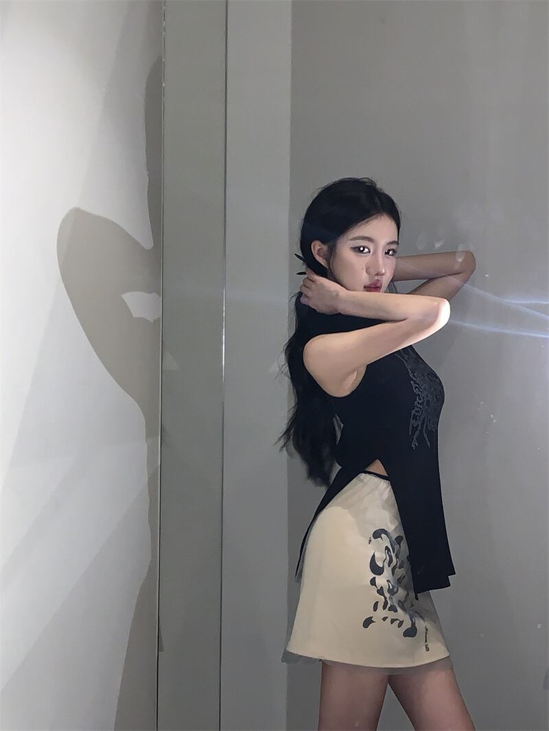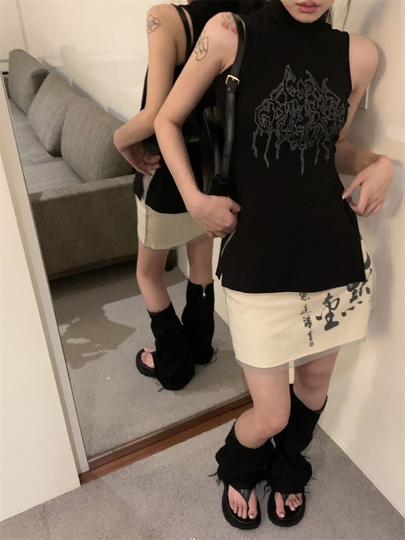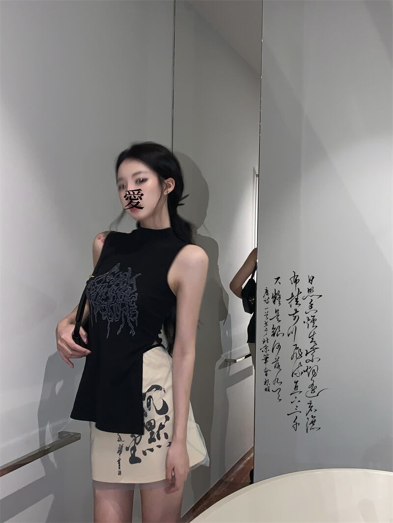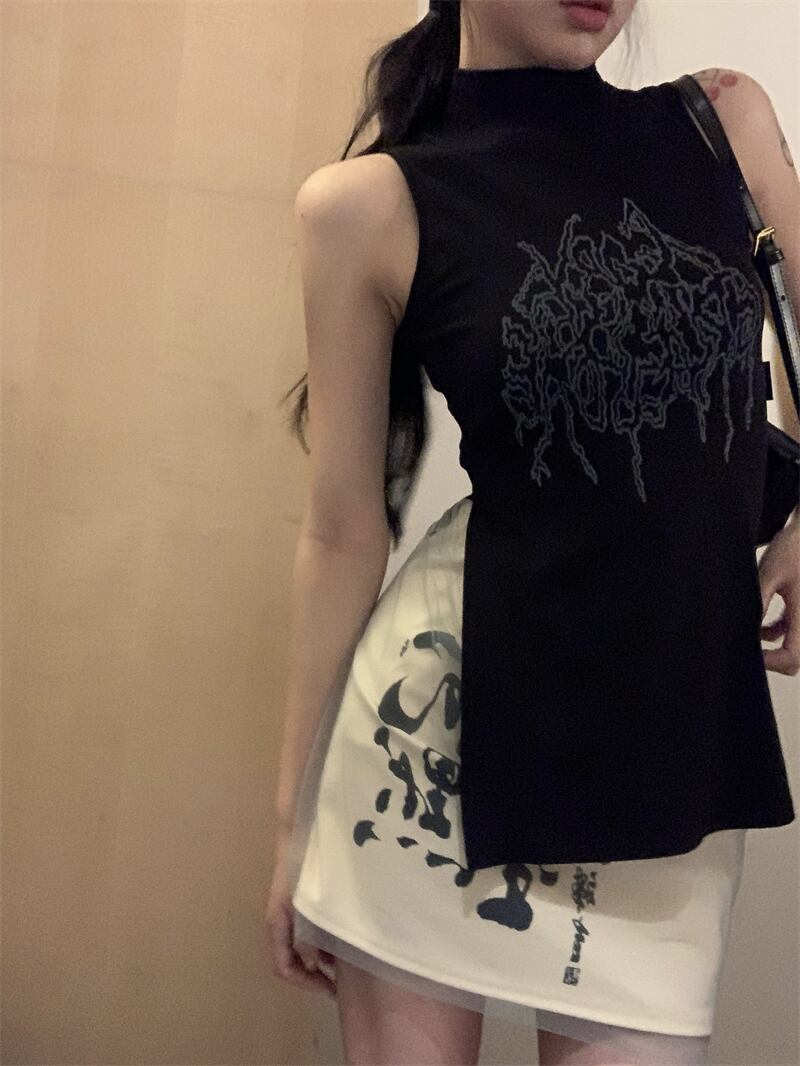 -quality temperament semi-high-neck sleeveless vest women's outer wear summer 2022 new split k slim top trendy サマー 夏物 ノースリーブ スリム 0921940211497733