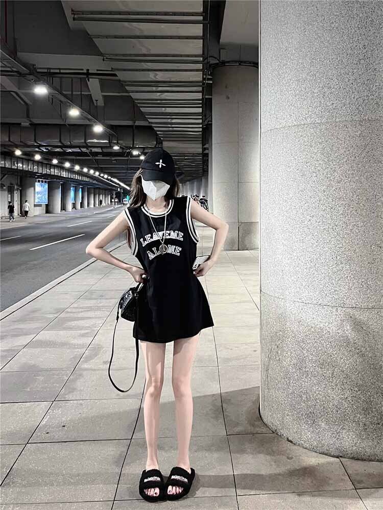 Net Red Fried Street Letter Sports Sleeveless T-Shirt Women's Summer 2022 Sense Mid-Length Chic Top Trend レッド ストリート サマー 夏物 ノースリーブ Tシャツ 0921913554166964