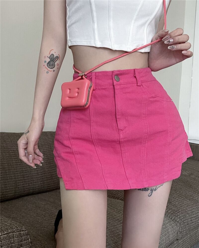 Rose red skirt women's summer 2022 new short skirt pants small high waist thin A word bag hip skirt ハイウェスト ショート レッド サマー 夏物 スカート 0921955954432453