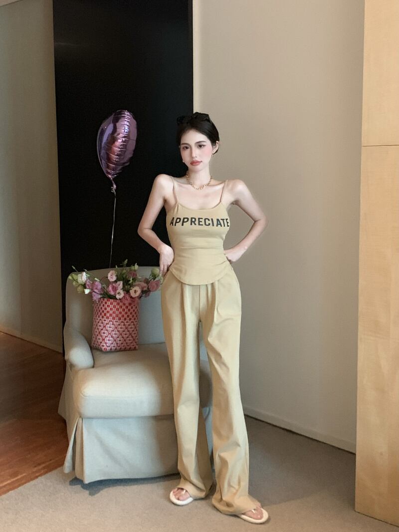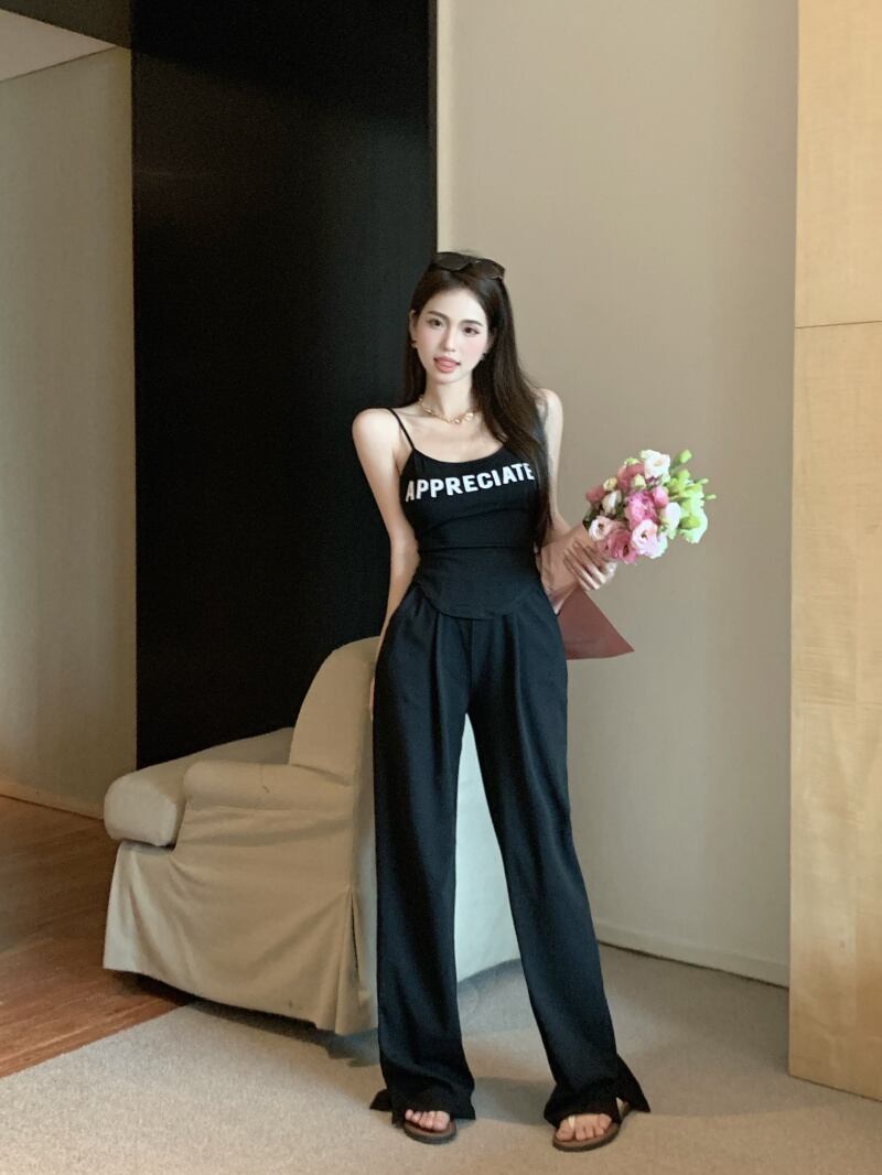 Lazy wind split wide-leg pants women's high waist drape summer 2022 new version all-match loose and thin casual pants ハイウェスト カジュアル サマー 夏物 0921997330012306