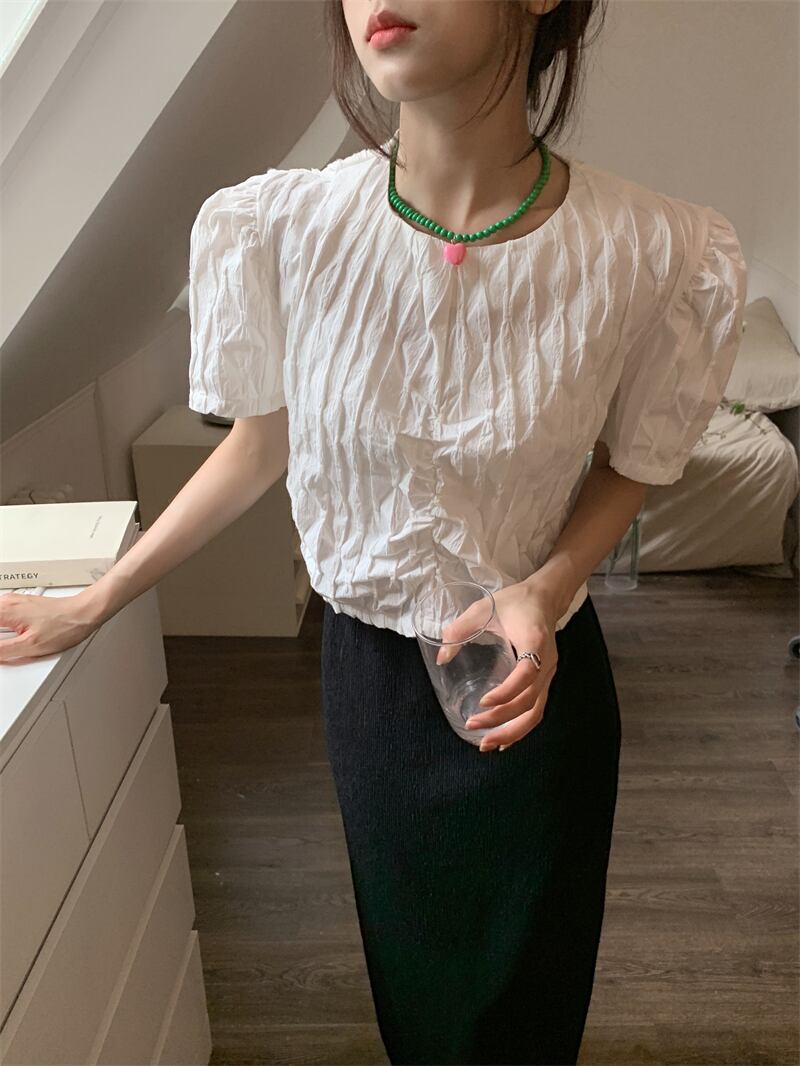 sense niche texture white shirt women's summer 2022 new chic hollowed out thin short top trendy ショート ホワイト サマー 夏物 0921992790497263