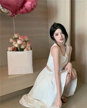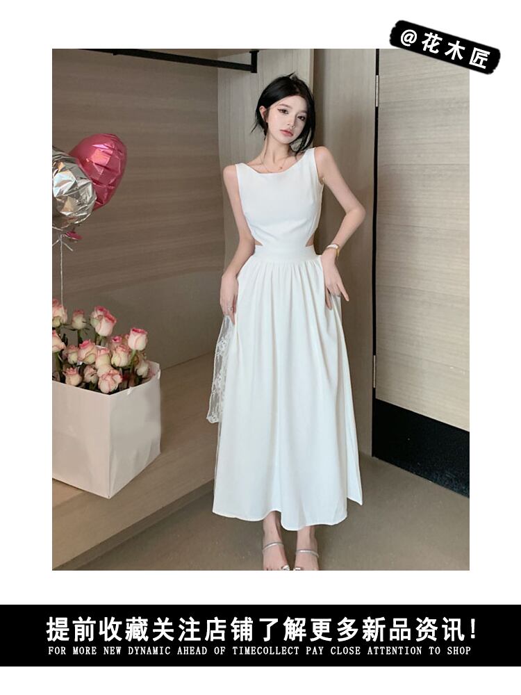 -end vest dress women's summer 2022 new French design hollow waist chic pleated skirt プリーツ サマー 夏物 スカート 0921961789671505