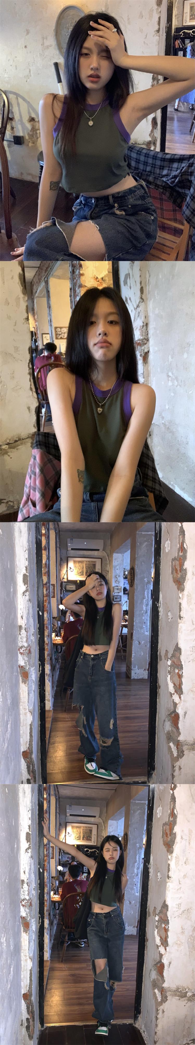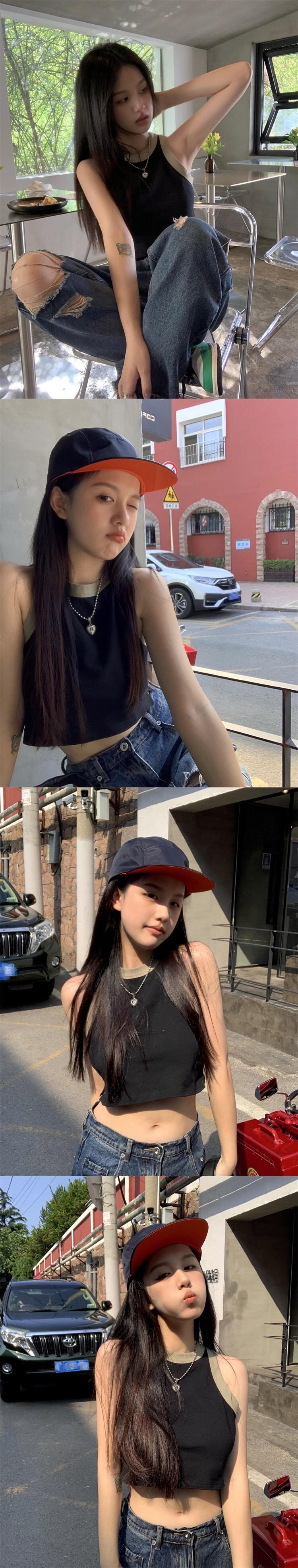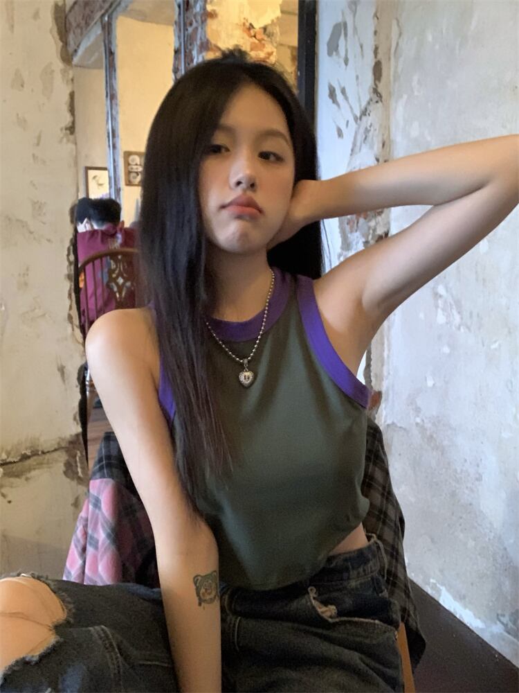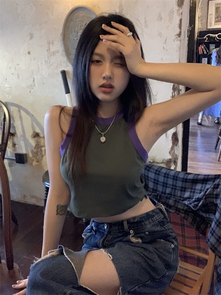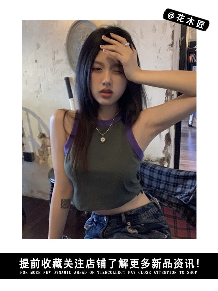 Hot design sense contrast color short vest women's inner wear summer 2022 new slim fit and thin outer wear crop top ショート サマー 夏物 スリム 0921929276548003