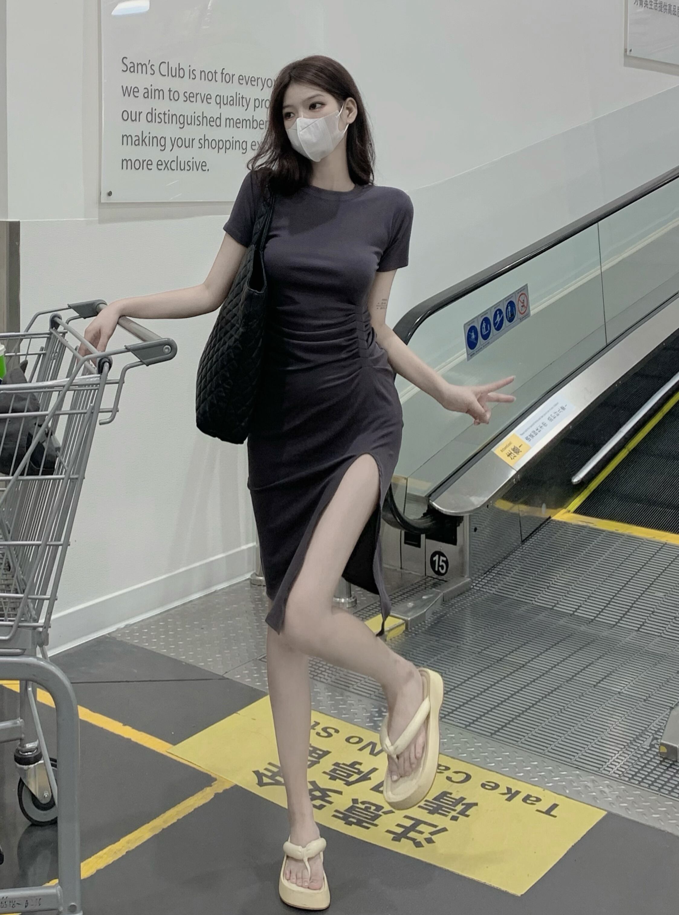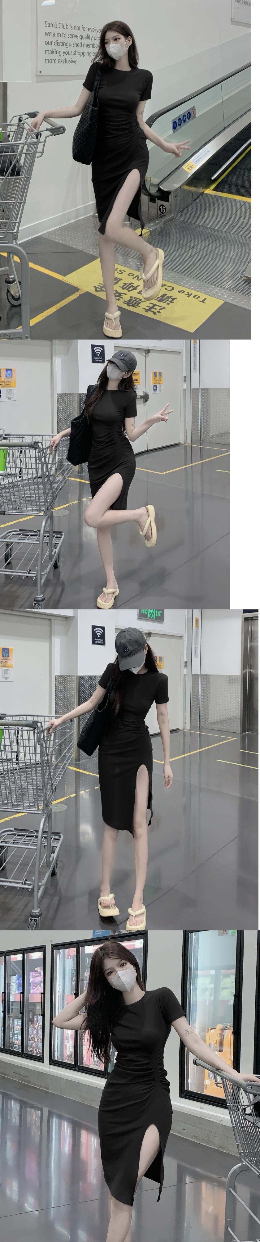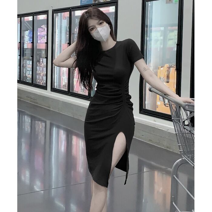 Be careful machine pleated split black dress women's summer 2022 new temperament waist slimming hip skirt ブラック プリーツ サマー 夏物 スカート 0921980541869951