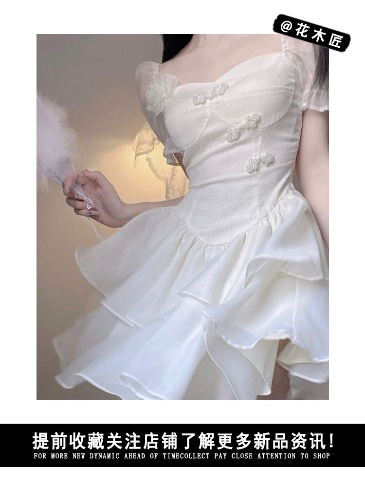 Gentle wind fairy mesh bell-sleeved dress female summer 2022 new waist was thin fluffy cake skirt tide ふわふわ サマー 夏物 メッシュ スカート 0921954448961396