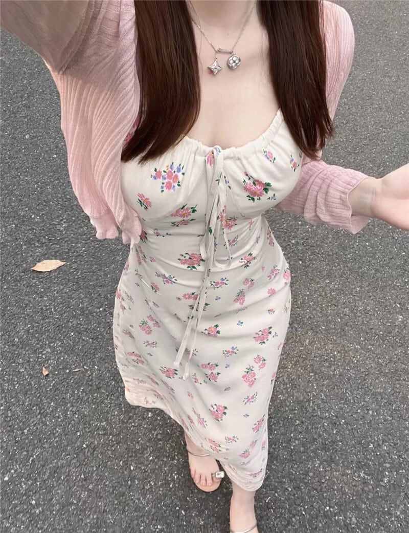 Gentle sweet lace sling floral dress female summer 2022 new temperament waist A-line skirt ins レース 大人ガーリー スウィート キュート カジュアル サマー 夏物 花柄 スカート Aライン 0921995155591325