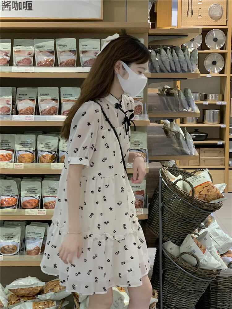 National style improved cheongsam disc buckle floral dress women's summer 2022 new fungus edge loose A-line skirt サマー 夏物 花柄 スカート Aライン 0921964601627016